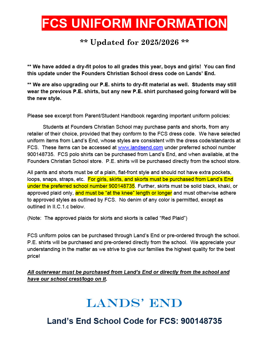 Land's End FCS School Uniform Page